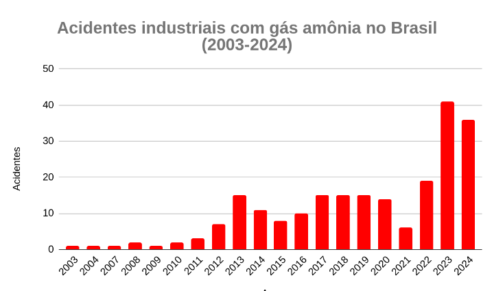 In 2025, Brazil recorded an increase in industrial ammonia accidents, with 15 leak incidents and one involving a Brazilian company in Paraguay, according to ObAgro data. The cases mainly affected refrigeration facilities such as slaughterhouses and industrial plants.