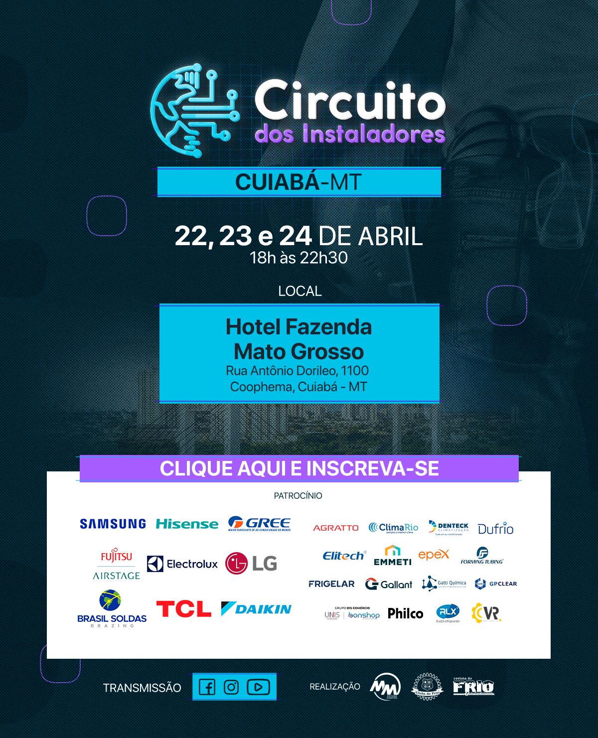 Circuito dos Instaladores é uma iniciativa de valorização profissional promovida pela Revista do Frio, levando conhecimento técnico e inovações do setor para todas as regiões do Brasil.