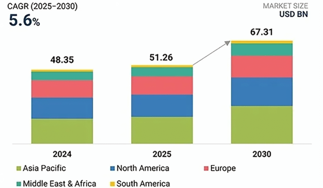 The global commercial refrigeration market is projected to grow from US$ 51.26 billion in 2025 to US$ 67.31 billion by 2030, at a CAGR of 5.6%, according to MarketsandMarkets. Asia Pacific leads market growth, followed by North America and Europe.