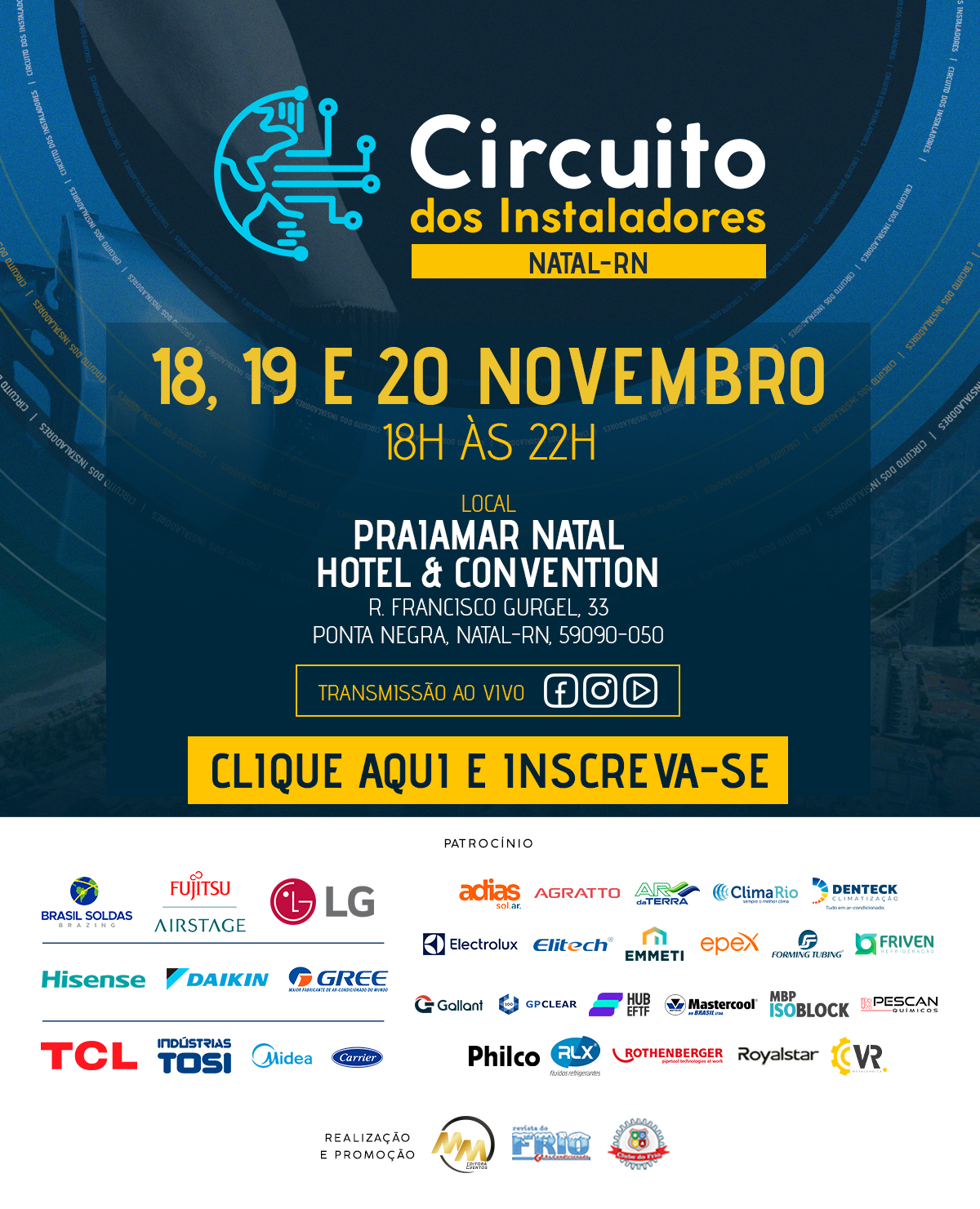 Circuito dos Instaladores é uma iniciativa de valorização profissional promovida pela Revista do Frio, levando conhecimento técnico e inovações do setor para todas as regiões do Brasil.